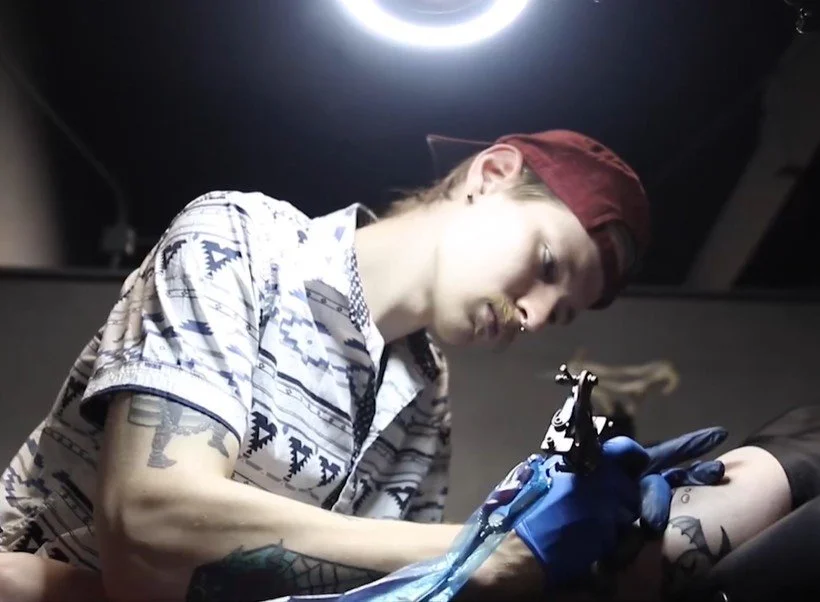 Apprenticed under Eric Carter in 2023, Brock fosters a deep love of tattoo history and culture. With a strong background in American/Neo Traditional, he is proficient in many styles and enjoys servicing the various tattoo needs of the community. When he's not tattooing he's painting, playing with jazz/folk bands, and pushing to never stop learning and growing as an person."